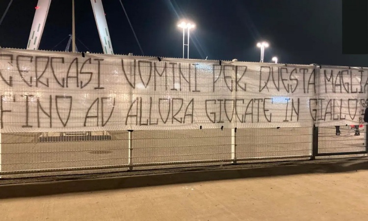 尤文球迷組織先是在球場集結(jié),隨后前往球隊賽前集訓(xùn)地表達不滿。球迷在球場外掛出兩條批評性橫幅,一條強調(diào)“你們所有人都只是過客,而我們是足球的歷史”,另一條則直接批評球員“為這件球衣尋找真男人”。