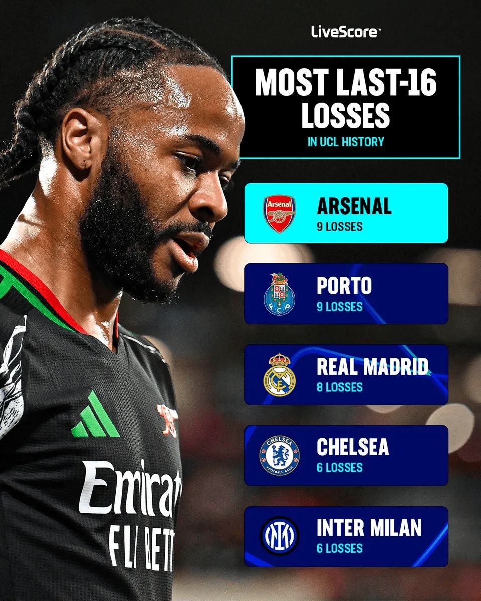 3月5日訊 歐冠1/8決賽首回合,阿森納客戰(zhàn)埃因霍溫的比賽即將打響。據(jù)統(tǒng)計,在歐冠歷史中,阿森納和波爾圖是歐冠16強輸球次數(shù)并列最多的球隊。