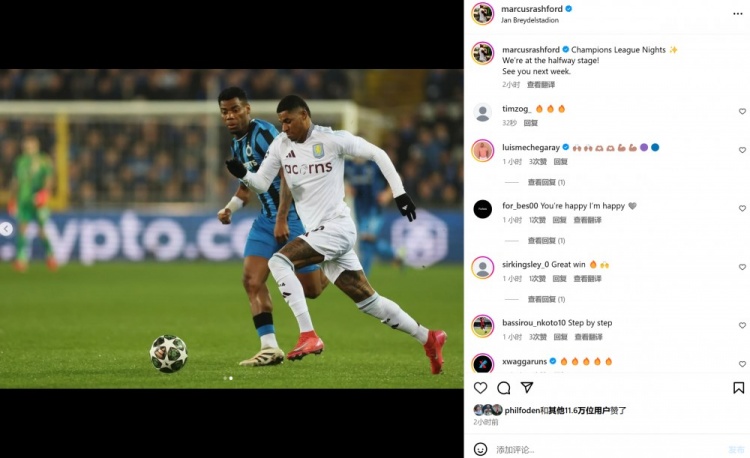 本場(chǎng)比賽拉什福德首發(fā)登場(chǎng),賽后他也在個(gè)人社媒曬出本場(chǎng)照片,配文寫道:“歐冠之夜!我們距離晉級(jí)還有一半路程,下周我們?cè)僖?jiàn)!”