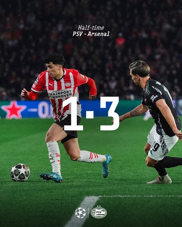 3月5日訊 埃因霍溫在本輪歐冠半場1-3落后阿森納,主隊開場連丟3球。