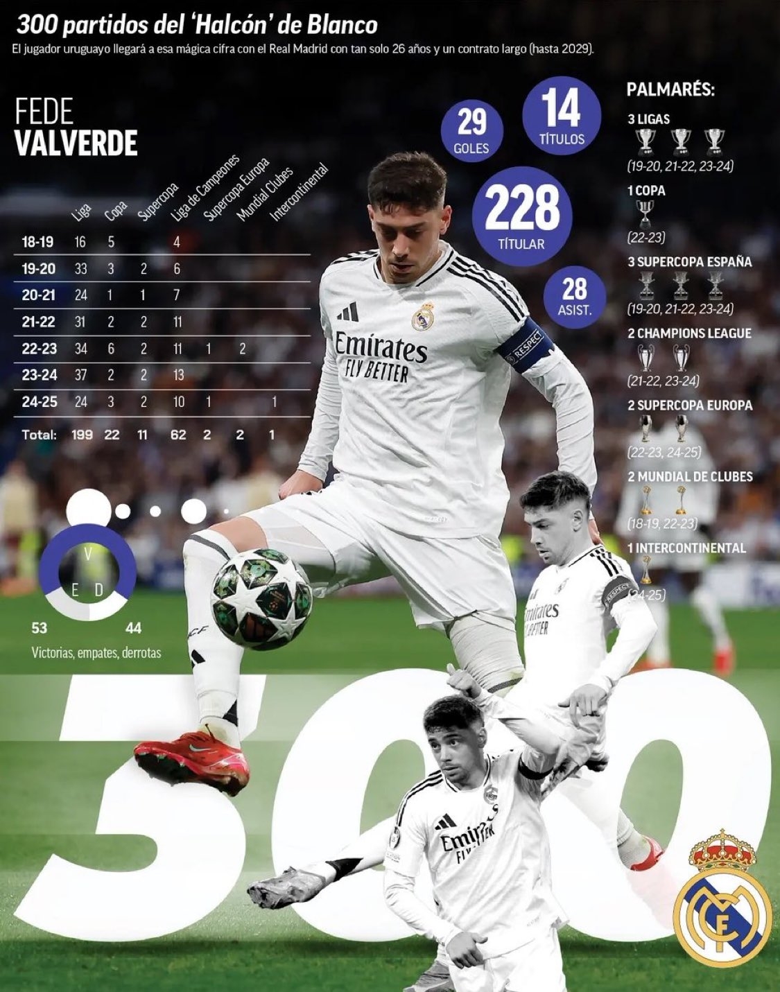 數(shù)據(jù)統(tǒng)計(jì)顯示,巴爾韋德在此前299場貢獻(xiàn)29球28助攻,并隨隊(duì)贏得了14座冠軍。
