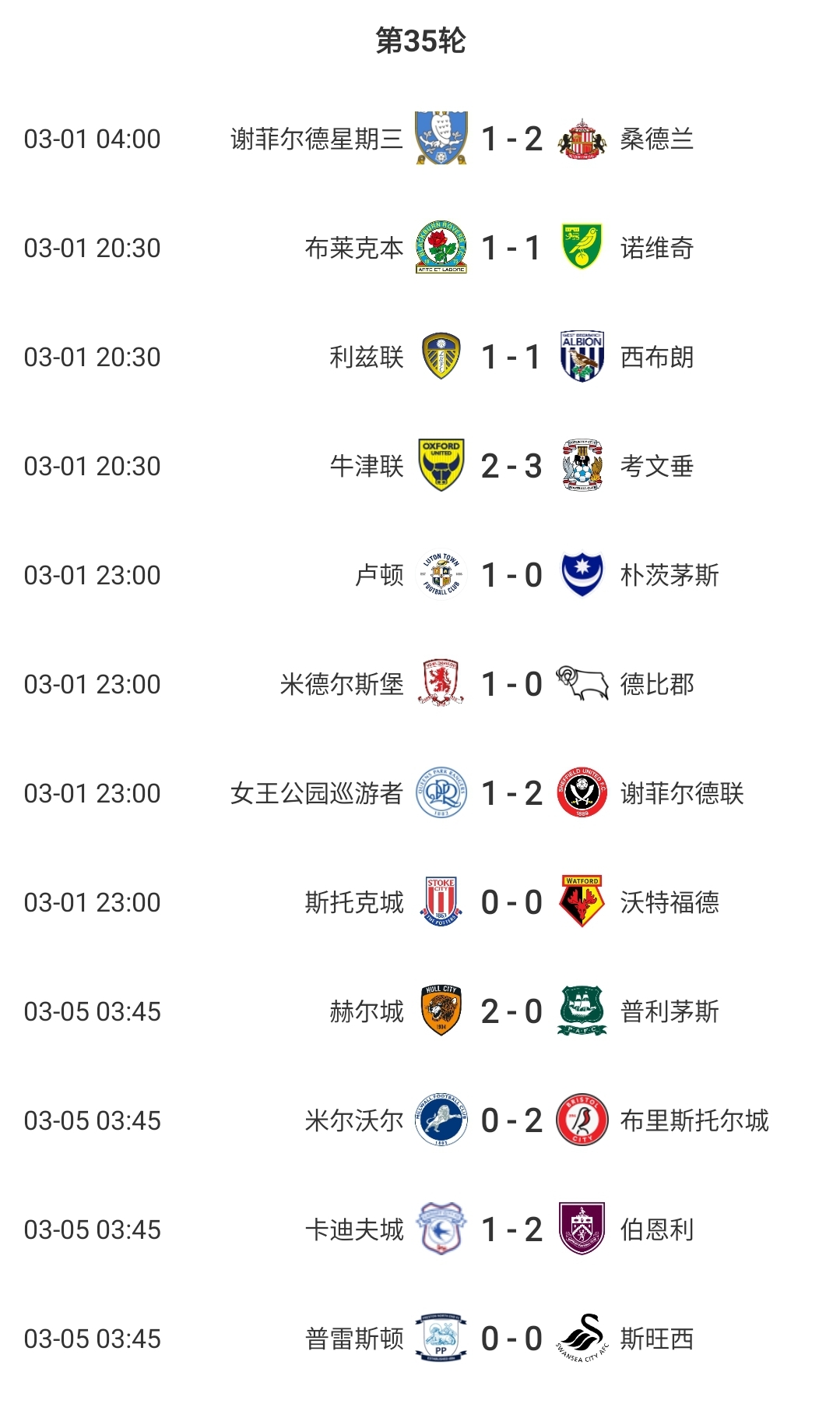 03月05日訊 英冠第35輪在北京時間今天凌晨全部結束,目前利茲聯3分領跑,因財務違規(guī)開局被扣2分的謝菲爾德聯第2,伯恩利35輪僅丟10球排名第3,桑德蘭積65分位列第4,這四支球隊斷層領跑。 標簽: 足球 英超