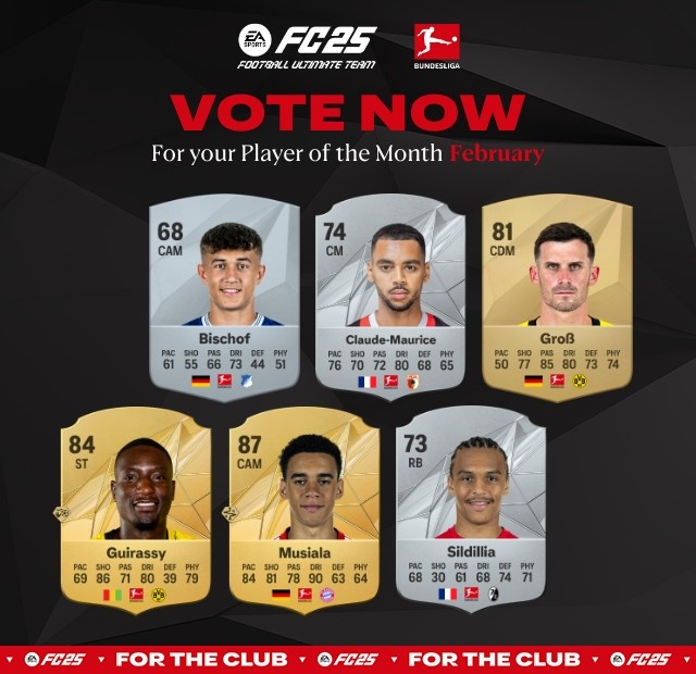 3月5日訊 德甲官方公布了2月最佳球員候選6人名單,穆西亞拉和吉拉西領(lǐng)銜。