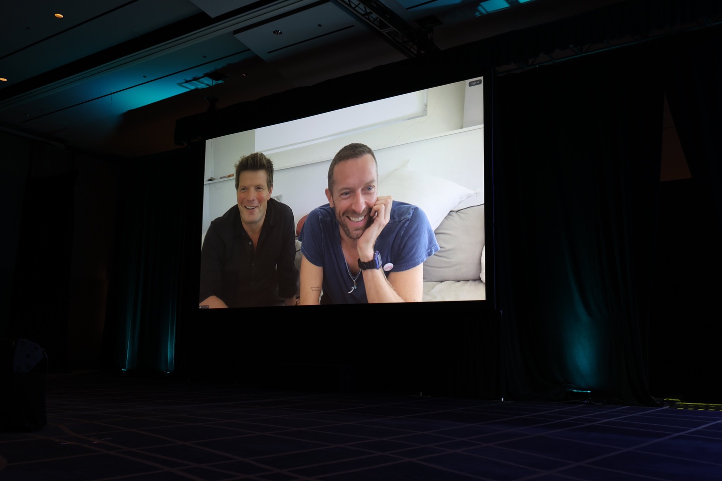 我們還要感謝酷玩樂隊(duì)的克里斯-馬?。ㄖ鞒┖头茽?哈維(經(jīng)理人),他們將與FIFA合作,確定世界杯決賽中場(chǎng)表演以及在時(shí)代廣場(chǎng)表演的藝術(shù)家名單。