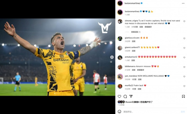 鋒線雙星雙雙破門,勞塔羅&小圖拉姆社媒曬怒吼慶祝照