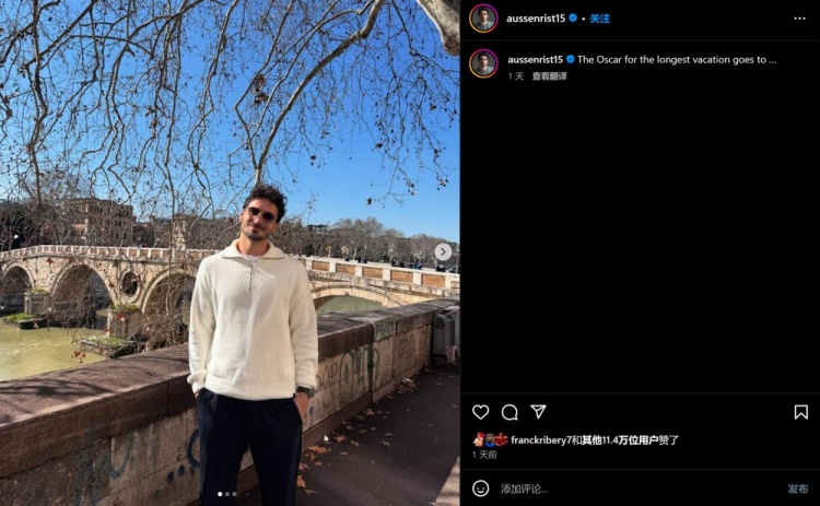 昨天,胡梅爾斯曬出自己在羅馬游玩的照片,由于正值奧斯卡頒獎時間,他配文:奧斯卡最長假期獎頒發(fā)給......。不過,由于在對陣科莫的比賽中,胡梅爾斯替補未出場。因此,有網(wǎng)友認(rèn)為胡梅爾斯的配文是在暗諷拉涅利沒給自己出場機會。