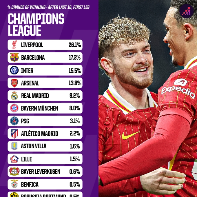 其中,大概率晉級歐冠八強(qiáng)的球隊(duì)包括:利物浦、巴薩、國米、阿森納、皇馬、拜仁、維拉、里爾。