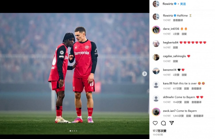 3月7日訊 勒沃庫森在昨日歐冠客場0-3完敗拜仁,維爾茨和弗林蓬在下半場被換下。