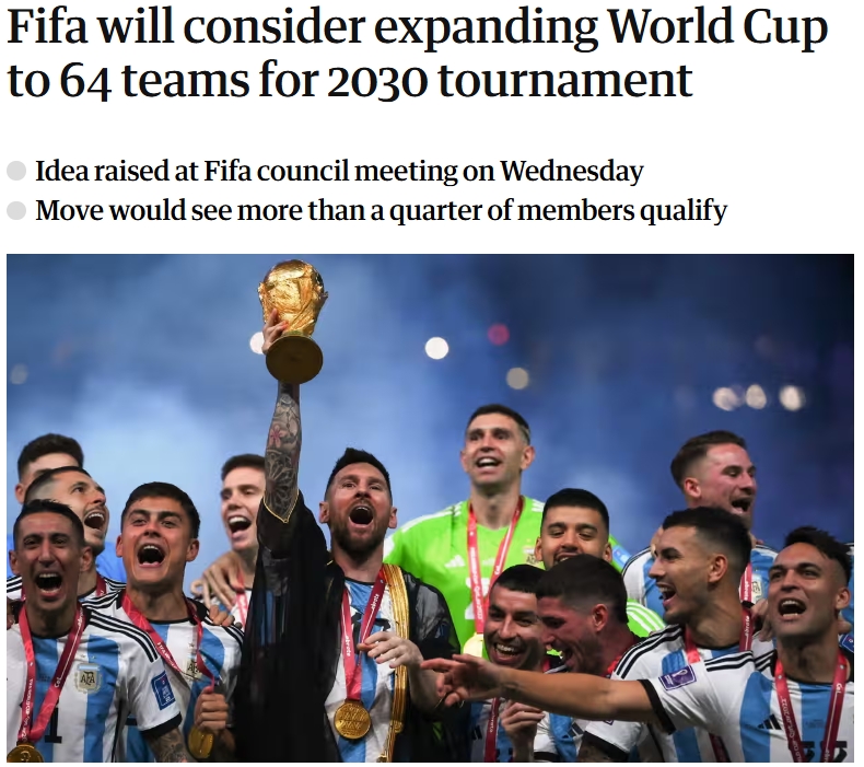 英國(guó)《衛(wèi)報(bào)》指出,如果2030世界杯擴(kuò)軍至64隊(duì),這對(duì)各大洲的影響將各不相同。