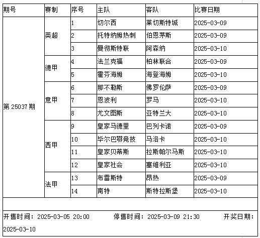 傳足勝負彩第25037期中不乏焦點賽事,其中曼聯(lián)對陣阿森納尤為引人關注。此外,切爾西主場面對萊切斯特城,尤文與亞特蘭大將在都靈安聯(lián)球場展開對決,皇馬則德比對陣巴列卡諾。