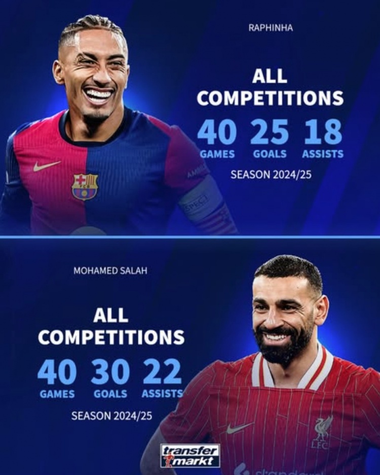 拉菲尼亞本賽季為巴薩各項(xiàng)賽事出戰(zhàn)40場(chǎng),貢獻(xiàn)25球18助攻。