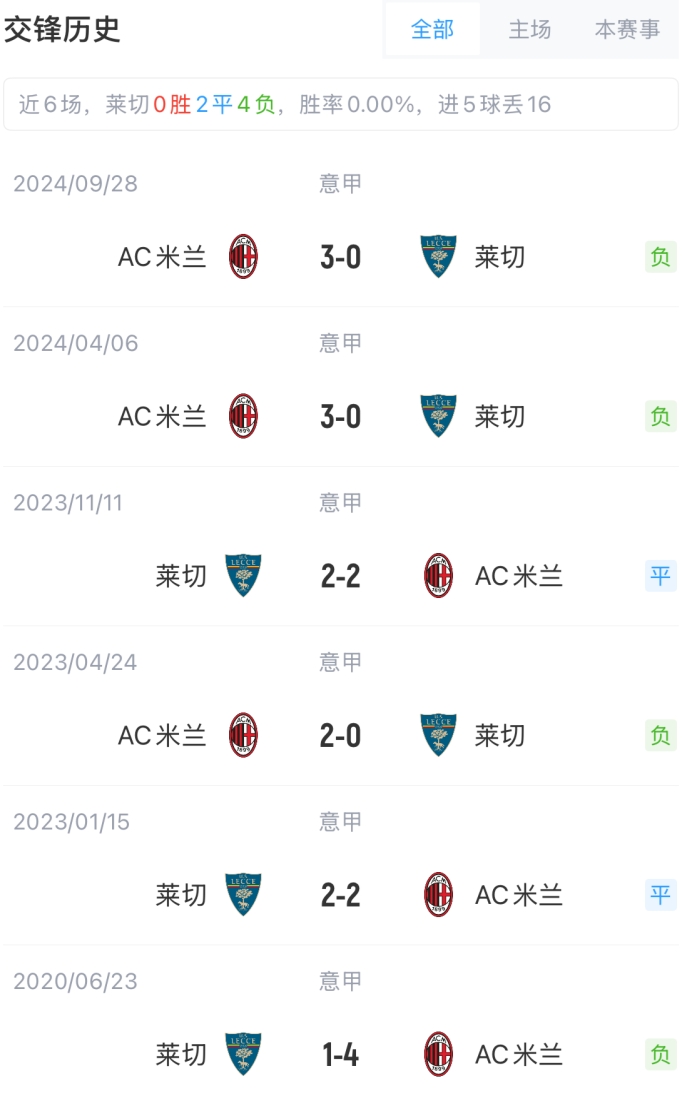 標(biāo)簽: 意甲 AC米蘭 萊切 足球