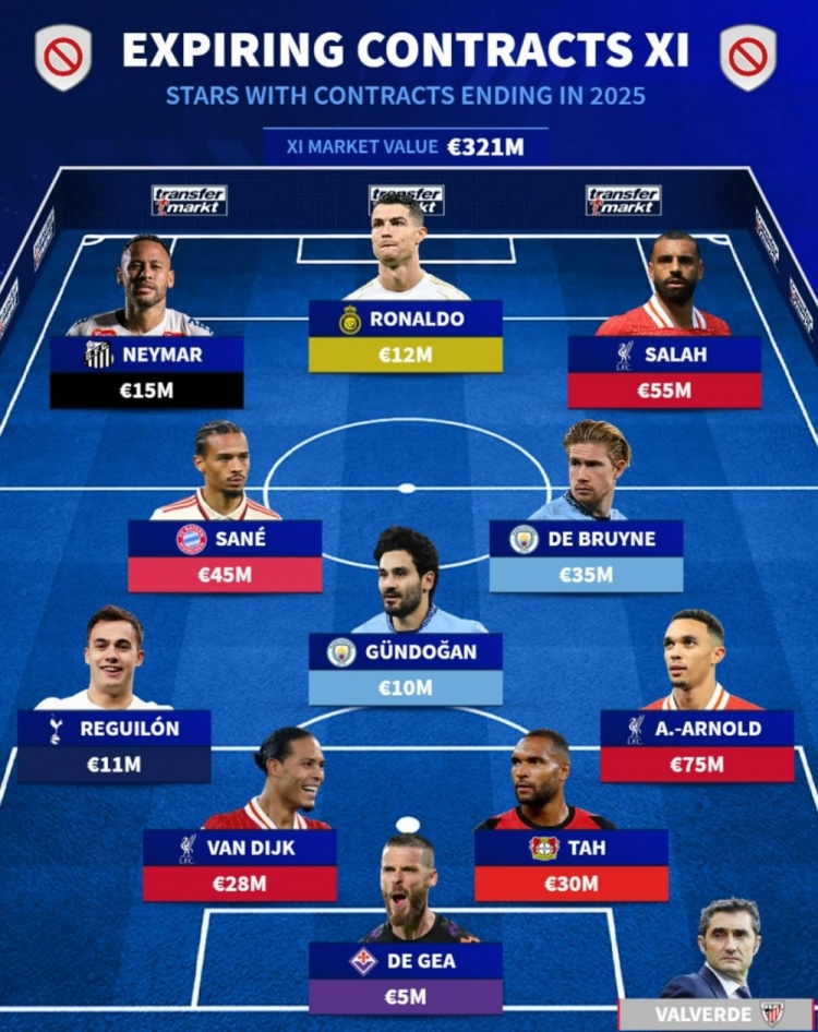 3月9日訊 德轉盤點了目前合同將在今年到期的11人球星陣容,其中C羅、內(nèi)馬爾、薩拉赫等在列。具體如下: