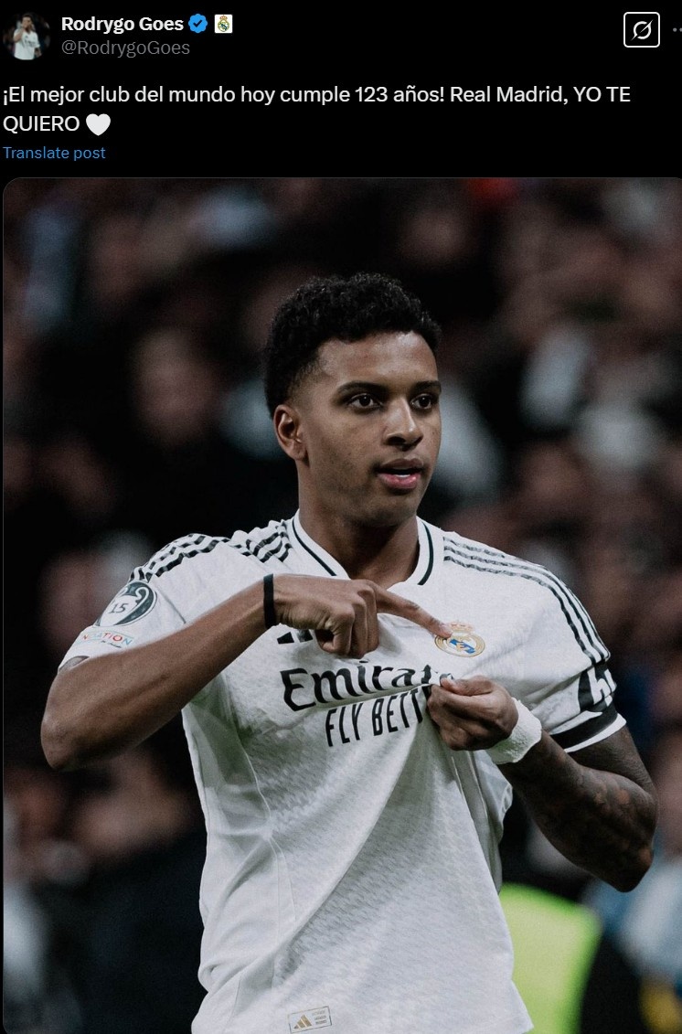 歐冠1/8決賽首回合皇馬2-1戰(zhàn)勝馬競,羅德里戈再次成為決定性人物。他以自己標(biāo)志性的方式完成這一切,沒有浮夸的慶祝,沒有多余的動作,完美詮釋個人風(fēng)格。但最引人注目的是進(jìn)球后的表態(tài):在親吻皇馬隊徽并用手指向伯納烏草皮做出"留駐"手勢后,他宣告"我會留在這里"。