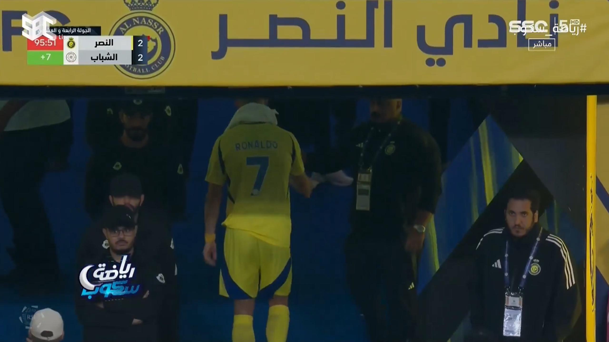 第24輪沙特聯(lián),C羅在上半場補(bǔ)時第7分鐘破門并在第71分鐘被換下。但電視鏡頭捕捉到C羅在球隊被2-2扳平后的憤怒畫面,并且他選擇在終場哨聲吹響前提前走向球員通道。