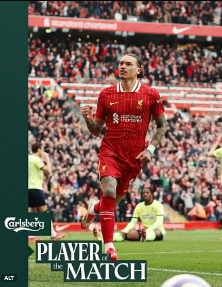 本場比賽下半場努涅斯先是破門扳平比分,隨后還創(chuàng)造一粒點(diǎn)球,賽后他也當(dāng)選利物浦官方評(píng)選出的本場隊(duì)內(nèi)最佳球員。