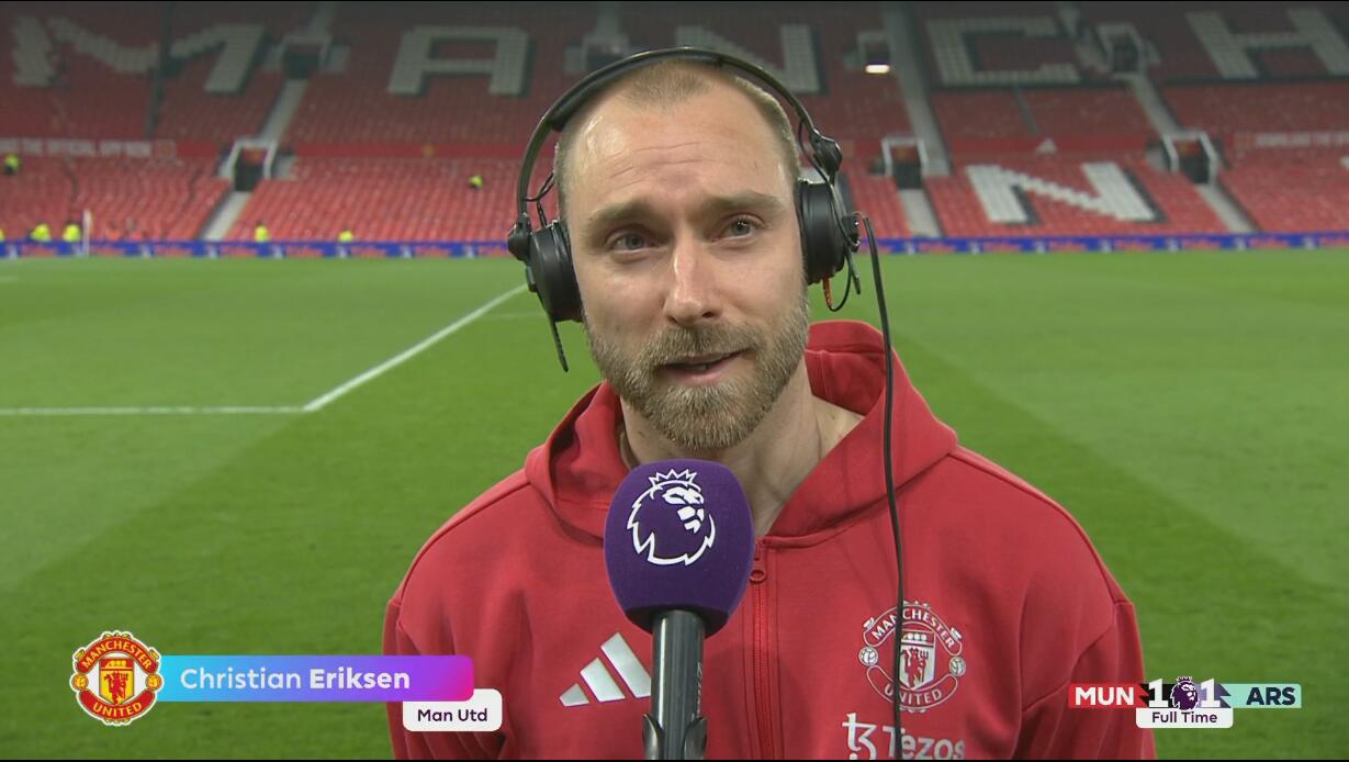 03月10日訊 在今天凌晨剛結束的英超第28輪,曼聯(lián)主場1-1戰(zhàn)平阿森納的比賽賽后,曼聯(lián)中場大將埃里克森接受了天空體育的采訪。