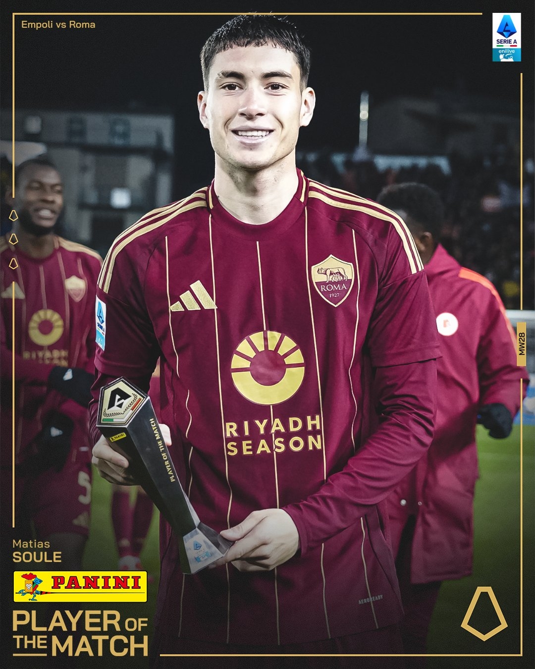 蘇萊也在賽后被意甲官方評(píng)為本場(chǎng)比賽最佳球員。