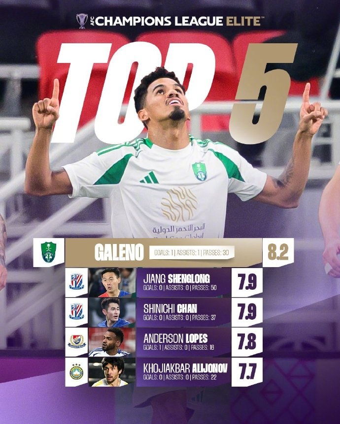 1、加萊諾(吉達(dá)國(guó)民)8.2分:1球1助攻30次傳球