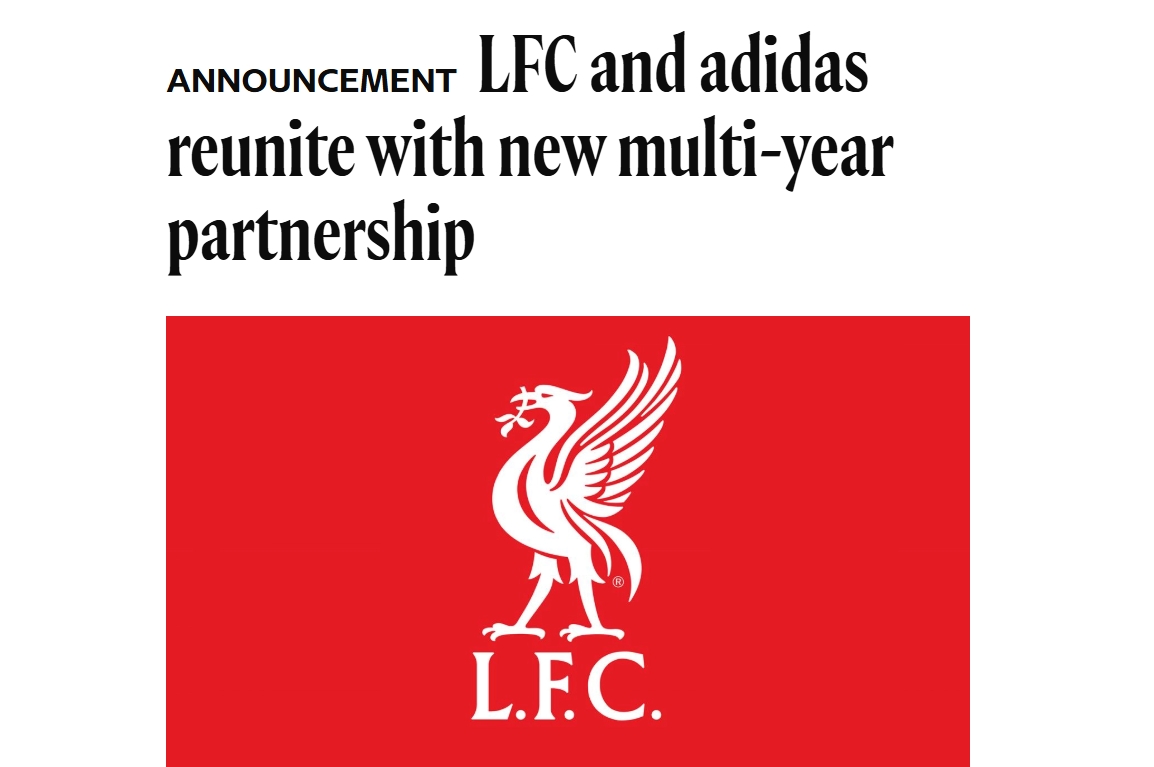 利物浦足球俱樂(lè)部與阿迪達(dá)斯達(dá)成了一項(xiàng)新的多年合作協(xié)議,這將使這家運(yùn)動(dòng)服裝巨頭再次成為俱樂(lè)部的官方球衣合作伙伴。
