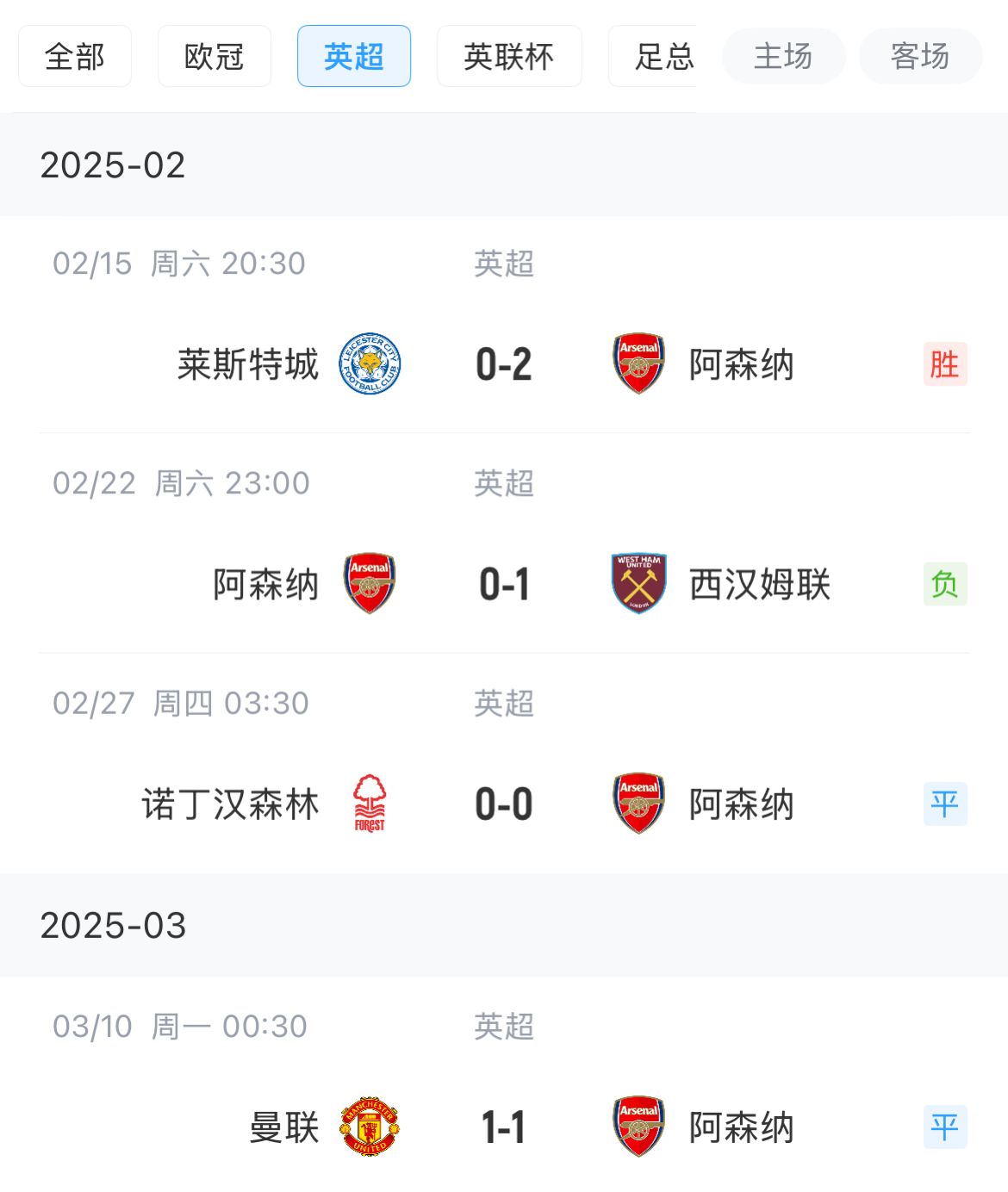 過去三輪比賽,阿森納總共只拿到2分,面對(duì)西漢姆聯(lián)、諾丁漢森林和曼聯(lián),槍手總共只打進(jìn)1球。