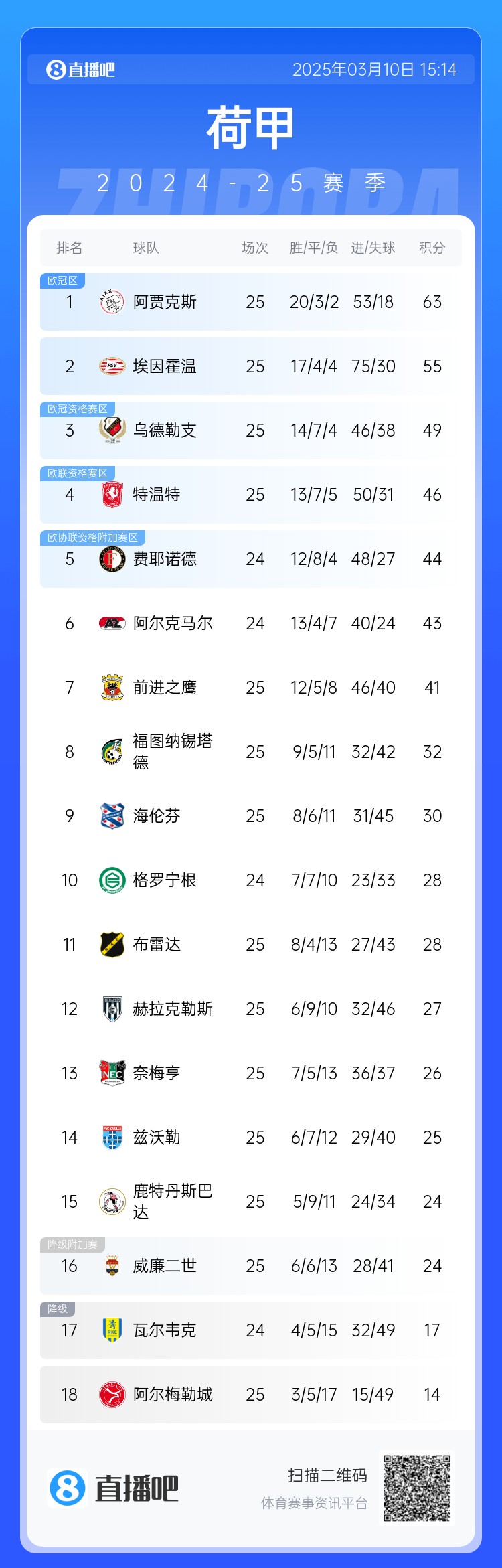 本賽季在35歲的意大利少帥法雷奧利的帶領(lǐng)下,阿賈克斯還剩9輪8分領(lǐng)跑荷甲積分榜,有望時(shí)隔2個(gè)賽季重奪荷甲冠軍。