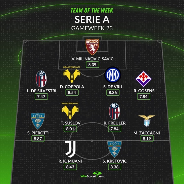 whoscored意甲本輪最佳陣: