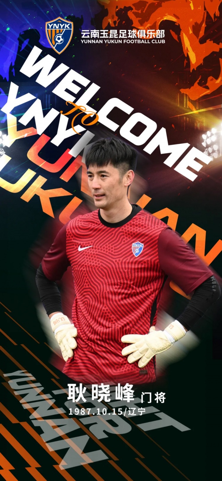 2月4日訊 中超升班馬云南玉昆俱樂(lè)部官方宣布,門將耿曉峰正式加盟球隊(duì)。