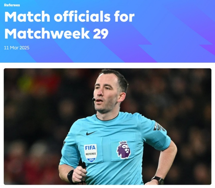 英超第29輪裁判: