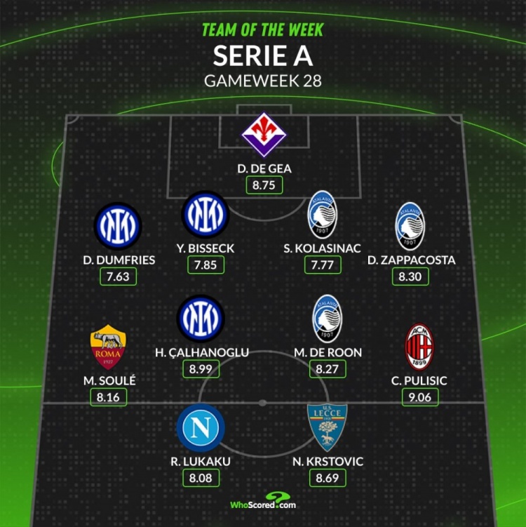 3月11日訊 意甲第28輪聯(lián)賽已經(jīng)完賽,whoscored也統(tǒng)計(jì)了本輪意甲最佳陣容,國(guó)米和亞特蘭大各3將入圍。