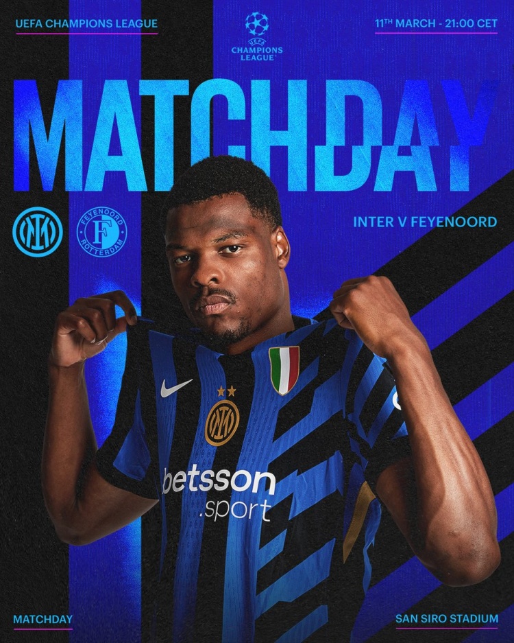 3月11日訊 北京時(shí)間明天凌晨4點(diǎn),國(guó)米將在主場(chǎng)對(duì)陣費(fèi)耶諾德,這是歐冠1/8決賽的次回合比賽,國(guó)米首回合2-0領(lǐng)先對(duì)手,國(guó)米在賽前發(fā)布了球隊(duì)海報(bào)。