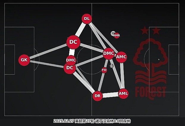 過去兩段成功的執(zhí)教經(jīng)歷,努諾-桑托都是主打三中衛(wèi)/五后衛(wèi)陣型。來到諾丁漢森林后,葡萄牙人根據(jù)現(xiàn)有人員特點(diǎn),改變了后防和中場的力量配比,研發(fā)了極具特點(diǎn)的451陣型。