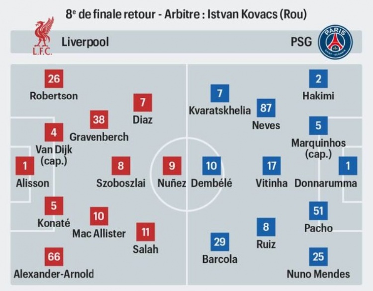 在雙方首回合交手中,利物浦客場(chǎng)1-0巴黎。