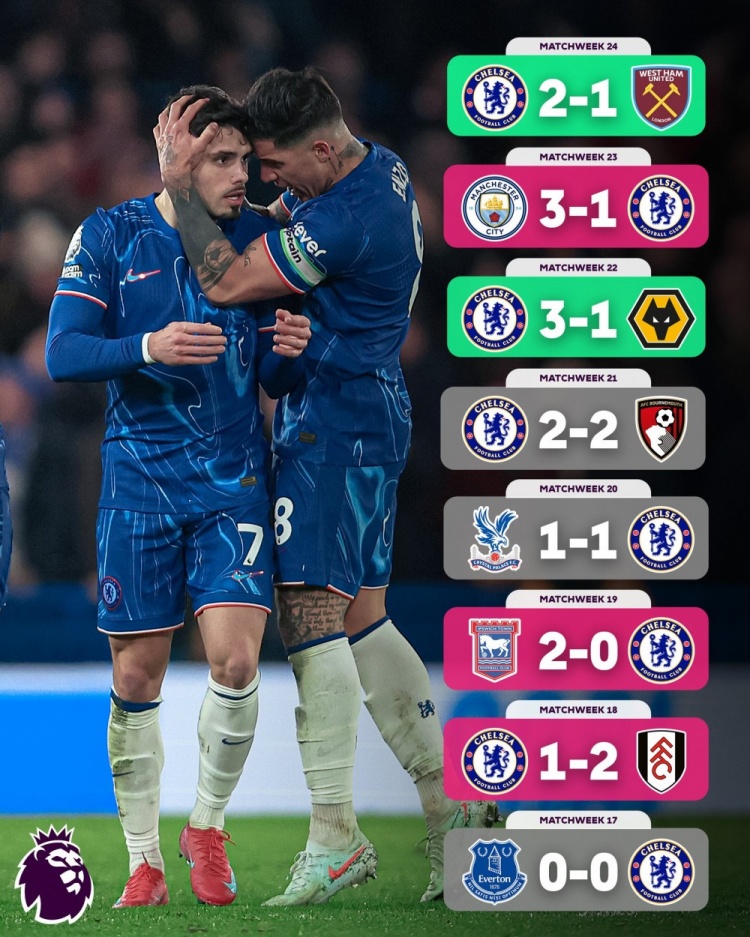 英超官方曬出了切爾西近8場(chǎng)英超比賽的戰(zhàn)績(jī),8場(chǎng)比賽藍(lán)軍僅取勝2場(chǎng),具體戰(zhàn)績(jī)2勝3平3負(fù)。