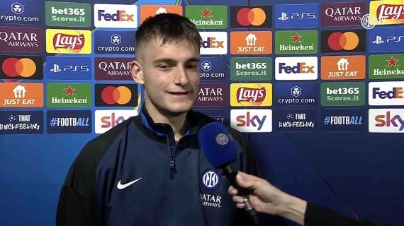 3月12日訊 在國米主場2-1擊敗費(fèi)耶諾德,總比分4-1晉級歐冠八強(qiáng)后,上演首秀的國米小將貝倫布魯赫接受了ITV的賽后采訪。