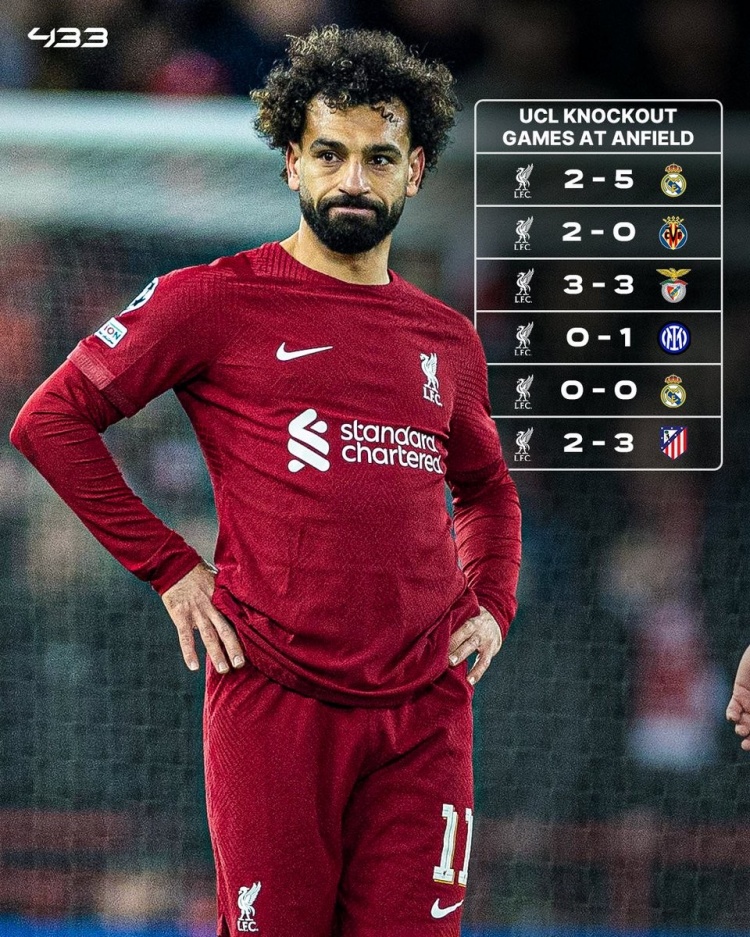 利物浦近6個(gè)歐冠淘汰賽主場(chǎng):1勝2平3負(fù)