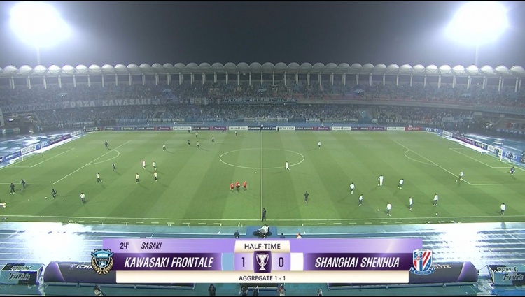 上半場比賽結(jié)束,上海申花0-1川崎前鋒。