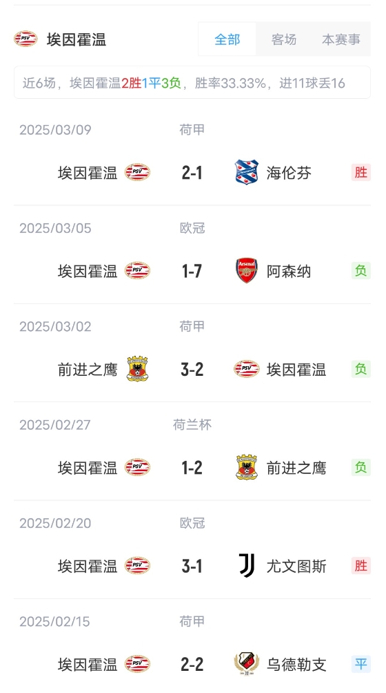埃因霍溫首發(fā):1-貝尼特斯、37-萊德斯馬、39-納加洛、4-奧比斯波、3-馬拉西亞、20-古斯-蒂爾、22-斯豪滕、25-巴巴迪、11-巴卡約科、5-佩里西奇、21-德里歐