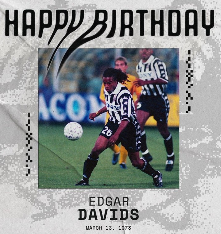 3月13日訊 今天是荷蘭名宿、“野豬”戴維斯52歲生日,尤文官方也曬照為這位舊將送上生日祝福。