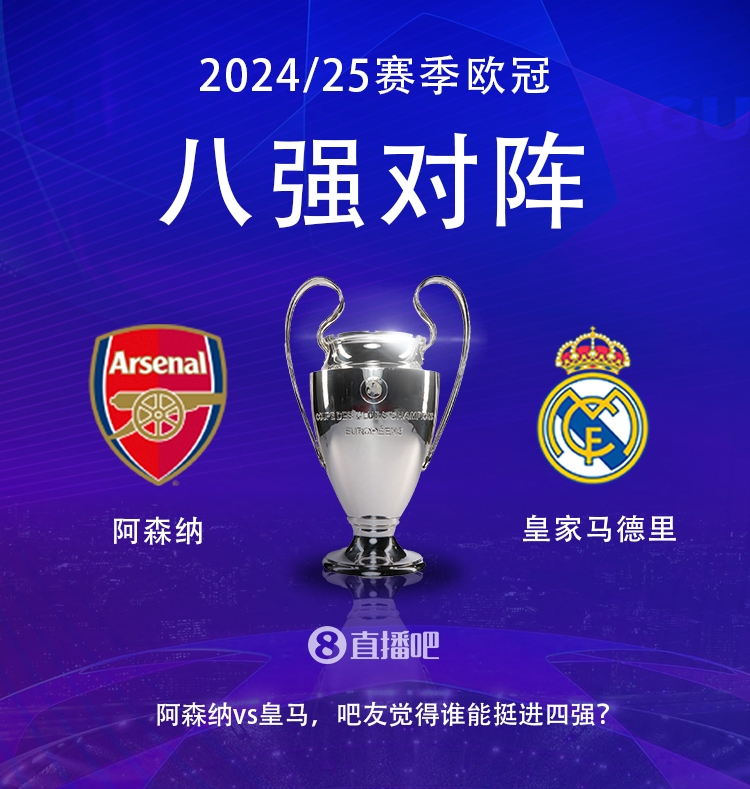 2024-25賽季歐冠1/4決賽,阿森納將對(duì)陣皇馬。