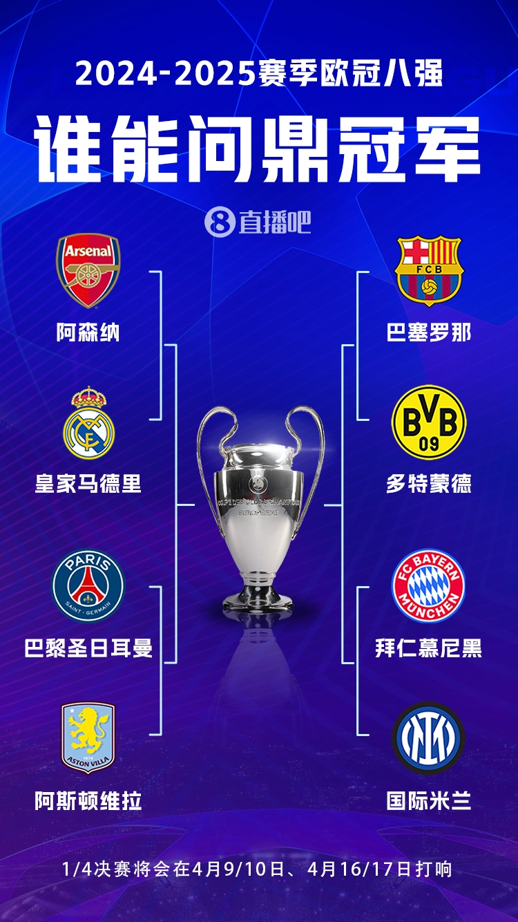 本賽季的歐冠8強(qiáng)沒(méi)有五大聯(lián)賽之外的球隊(duì),其中有6隊(duì)拿到過(guò)歐冠,僅有阿森納和巴黎沒(méi)有染指過(guò)大耳朵杯。不過(guò),兩隊(duì)均有歐冠亞軍,在各自國(guó)內(nèi)也是毫無(wú)疑問(wèn)的豪門(mén)。本賽季歐冠8強(qiáng),可謂是“豪門(mén)之戰(zhàn)”。