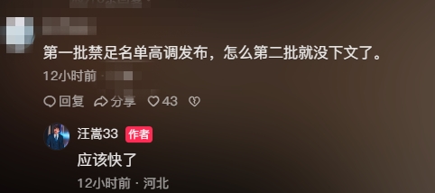 網(wǎng)友:第一批禁足名單高調發(fā)布,怎么第二批就沒下文了。