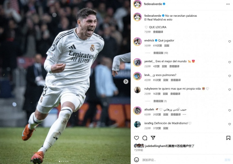 本場比賽巴爾韋德首發(fā)出戰(zhàn)表現出色,在點球大戰(zhàn)中也穩(wěn)穩(wěn)命中,賽后他在個人社媒曬出慶祝照,配文寫道:“無需多言,這就是皇馬,太瘋狂了!”