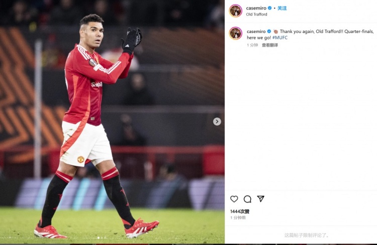 卡塞米羅也在被換下場時(shí)回報(bào)以掌聲,賽后還通過社媒曬出照片并配文:“再次感謝,老特拉福德?。。W聯(lián)杯八強(qiáng)戰(zhàn),我們來了!”