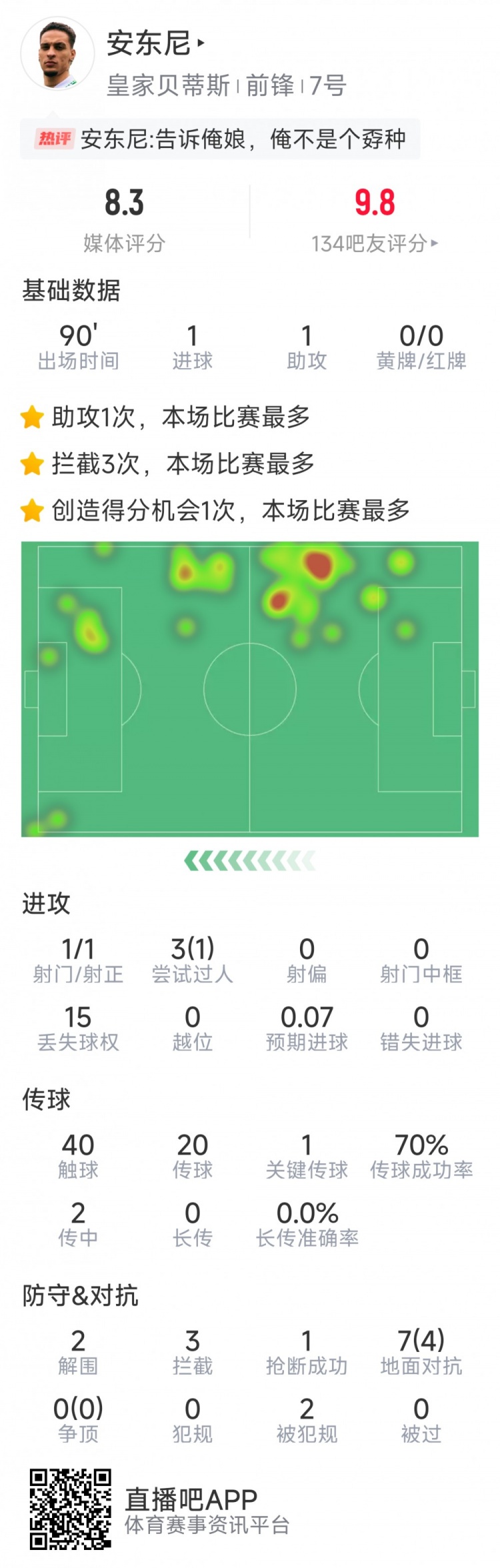 3月14日訊 在本輪歐協(xié)聯(lián)比賽中,安東尼傳射建功,以下為他在本場數(shù)據(jù):