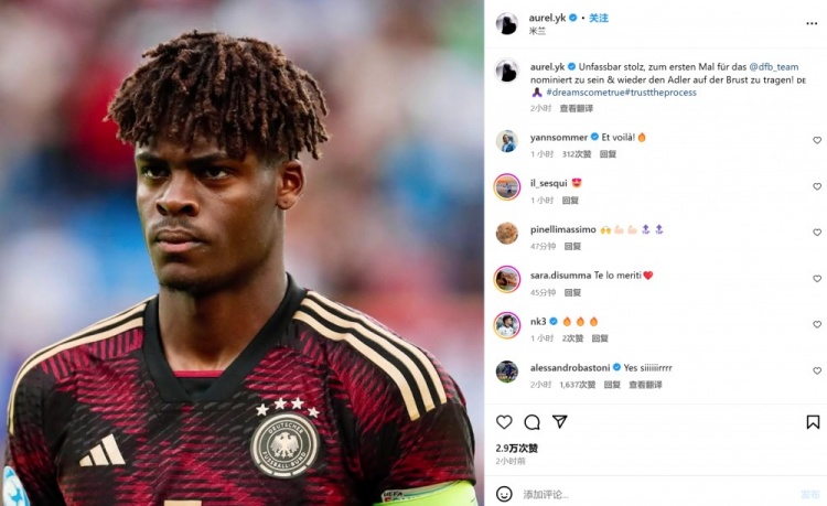 他也在社媒曬出自己在德國國青時(shí)期的照片,并配文:“我非常自豪能夠首次入選德國隊(duì),并且再次捍衛(wèi)胸前的隊(duì)徽。????????#夢想成真#相信努力必有回報(bào)#”。