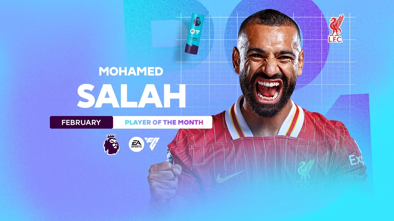 7次獲獎(jiǎng)平紀(jì)錄!官方:薩拉赫當(dāng)選英超2月最佳球員,2月6場(chǎng)6球4助