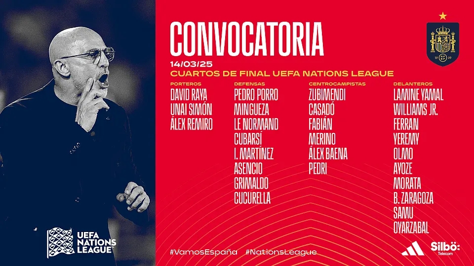 03月14日訊 西班牙國家隊公布新一期球員名單,亞馬爾、佩德里領(lǐng)銜,巴薩共有7人在列;皇馬中衛(wèi)勞爾-阿森西奧首次入選。
