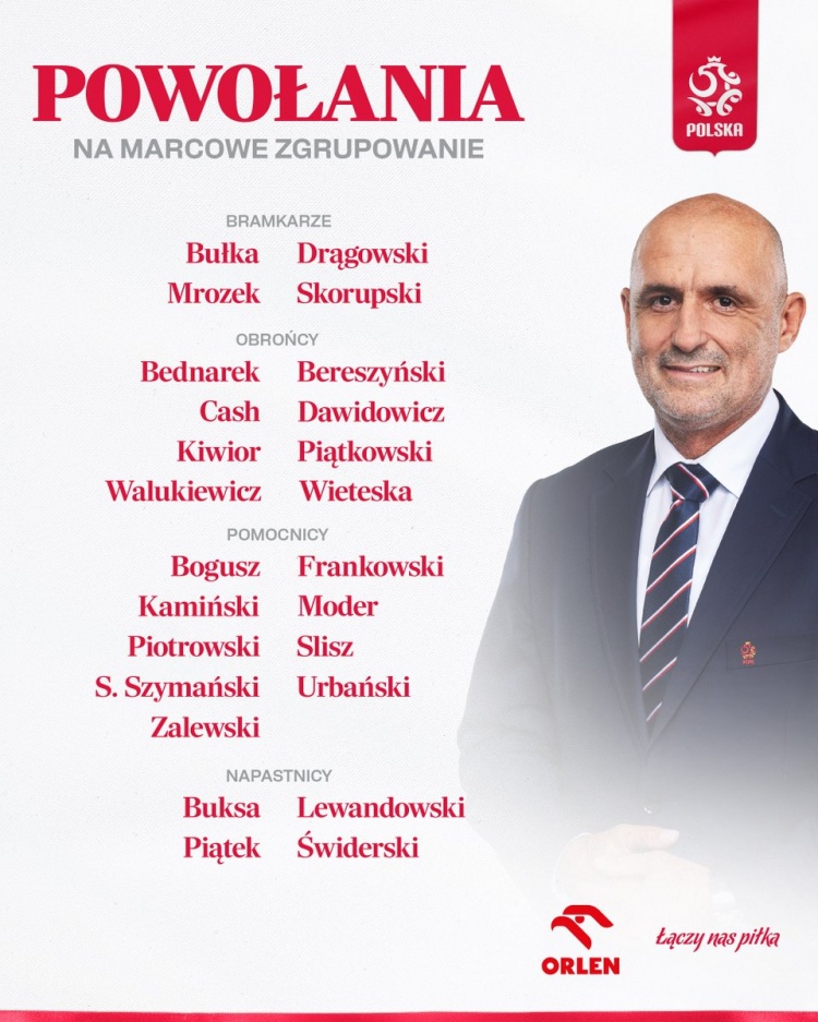 3月14日訊 波蘭最新一期國家隊名單公布,萊萬多夫斯基領銜,扎萊夫斯基、基維奧爾、皮亞特克在列。
