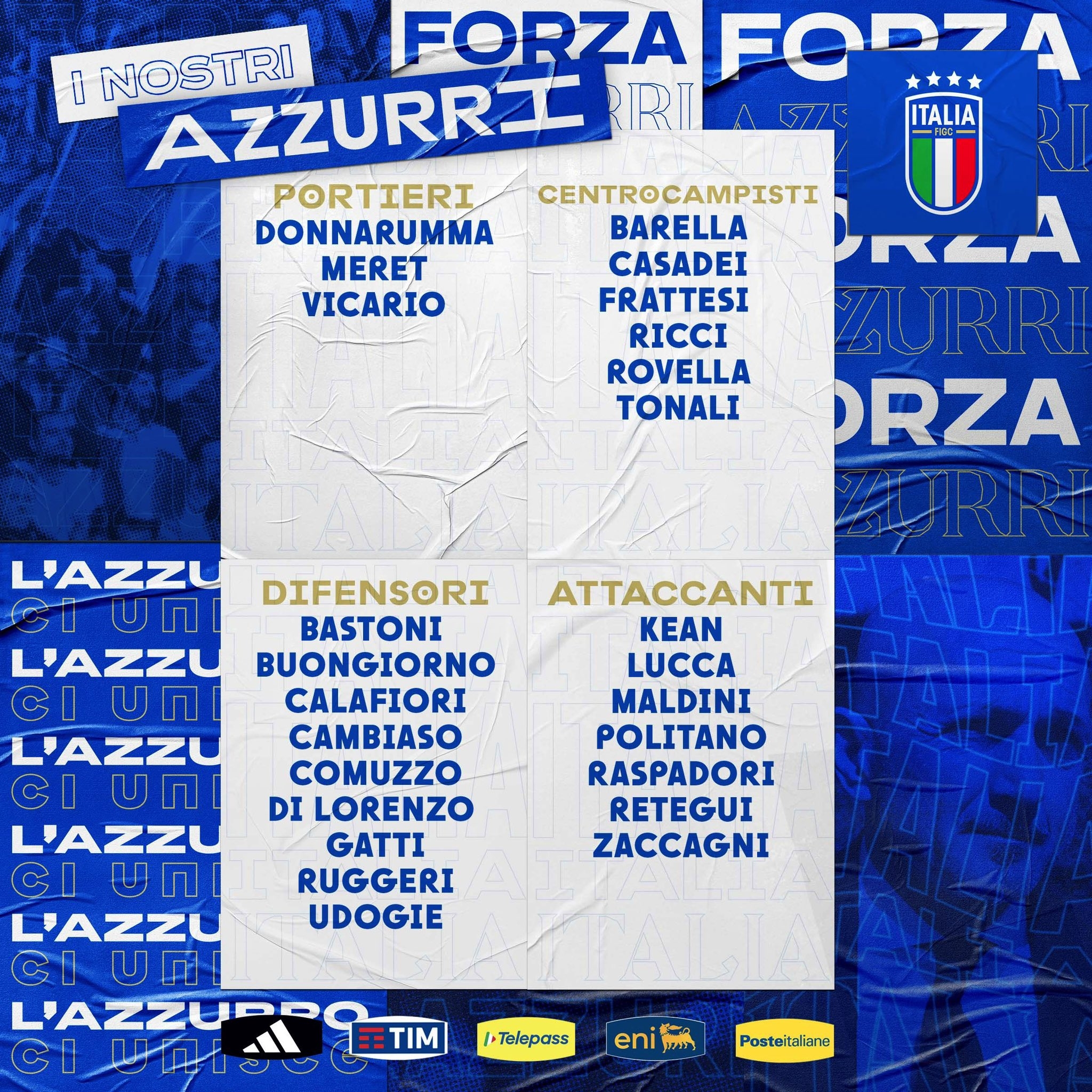 后衛(wèi):巴斯托尼(國米)、布翁喬爾諾(那不勒斯)、卡拉菲奧里(阿森納)、坎比亞索(尤文)、科穆佐(佛羅倫薩)、迪洛倫佐(那不勒斯)、加蒂(尤文)、魯杰里(亞特蘭大)、烏多吉(熱刺)